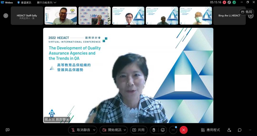 The 2022 HEEACT Virtual International Conference on “The Development of Quality Assurance Agencies and the Trends in QA” was held on 5th October 2022 via Cisco WebEx. The conference brought together experts and scholars of higher education and quality assurance who gathered online to share and discuss the development of international quality assurance agencies and the future prospect of quality assurance of higher education particularly in the post-pandemic era.